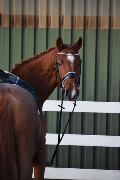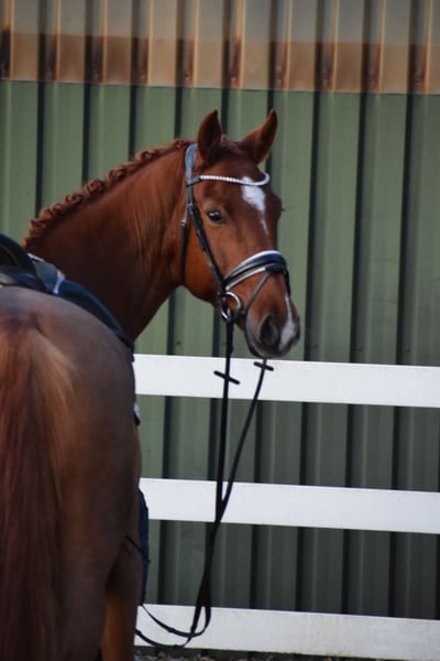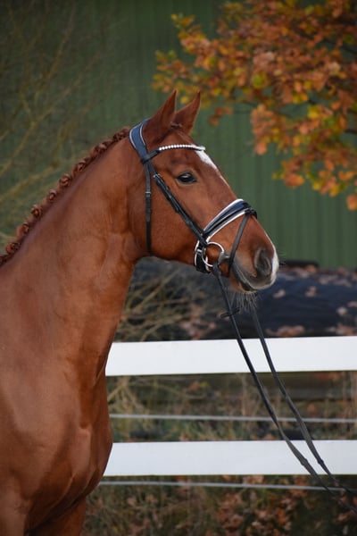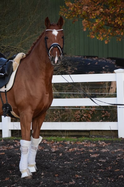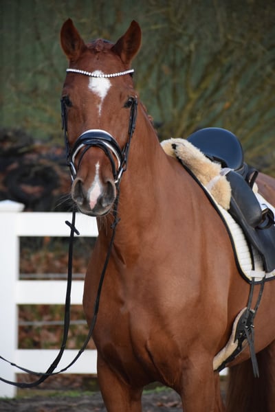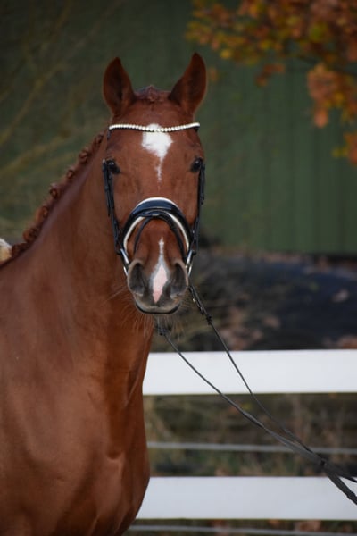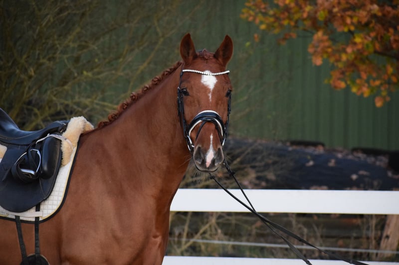 L TURNIERERFOLGREICHE, BILDSCHÖNE UND LEICHTRITTIGE DRESSURSTUTE, MIT VIEL TYP UND GANG & DEM HERZ AM RECHTEN FLECK - TOTILAS BLUT - Junioren geeignet! Zum Verkauf steht in Vertretung des Besitzers diese DRESSURPFERDE A & L erfolgreiche, 168cm 7 j., bunte holsteiner DRESSUR Fuchsstute (hinten 2 x weiß + Stern + Schnippe), mit bester Dressur der TYP und GRAND PRIX macher FOR ROMANCE & TOTILAS. "LEBENSFREUDE" hält was Ihr Name verspricht. Mit diesem Pferd, kann man sein Leben jeden Tag freudvoll bereichern. OPTISCH ist Sie mit Ihrem typvolen Gesicht & harmonischen Gebäude mit auffällig bunter Fuchs zeichung ein echter Hingucker. In BEWEGUNG zeigt sich eine rittige, elastische Dressurstute mit drei gleichwertig guten Grundgangarten, bei schwingendem Rücken, Bergauftendenz, ansprechendem Seitenbild und einem gut gewinkelten, abdruckstarken Hinterbein mit hoher Bereitschaft zur Lastaufnahme. Auf TURNIER konnte "LEBENSFREUDE" bereits Erfahrungen und Platzierungen Sammeln. Auf ihr Konto gehen unter anderem ein A** Dressur - SIEG (7,0), sowie Dressurpferde A - 4. Platz (7,4), Dressurreiter L* - 4. Platz (7,4). Auch in der ZUCHT konnte Lebensfreude nach Ihrer erfolgreich abgelegten Stutenleistungsprüfung - Reiten mit Bezirksprämie (2021), zwei herrausragende Revolution Fohlen hervor bringen. Somit wäre Sie später einmal auch als Zuchtstute wieder in Einsatz zu bringen. Auch die charakterlich Entwicklung einer Stute die bereits fohlen hatte, ist hier positiv zu betonen. Seid her befindet sich "LEBENSFREUDE" in Professionellem Beritt und auf L Niveau. Über Winter kann nun an Lektionen der Klasse M gearbeitet werden. Sie ist aber auch für jeden anderen Spaß zu haben, ob ein Sprung, ein Ausritt oder ein Ringreitwettbewerb, sie macht gerne mit. Wer also ein Pferd mit großer Perspektive, aber auch eine richtige LEBENSFREUDE sucht und dem Herz am rechten Fleck, der hat hier sein Pferd gefunden. Durch ihre hohe Kooperationsbereitschaft, Rittikeit und ihrem absolut ehrlichen Charakter ist sie auch Junioren / Junge Reiter geeignet. Eine echte gelegenheit ein tolles Pferd zu erwerben. Gerne kann "LEBENSFREUDE" nach dem Kauf auch bei uns im professionellen Beritt verbleiben und auch auf Turnier vorgestellt werden. Ein umfangreicher röntgenologischer (Standart + Rücken + Hals), sporttauglicher TÜV liegt vor.