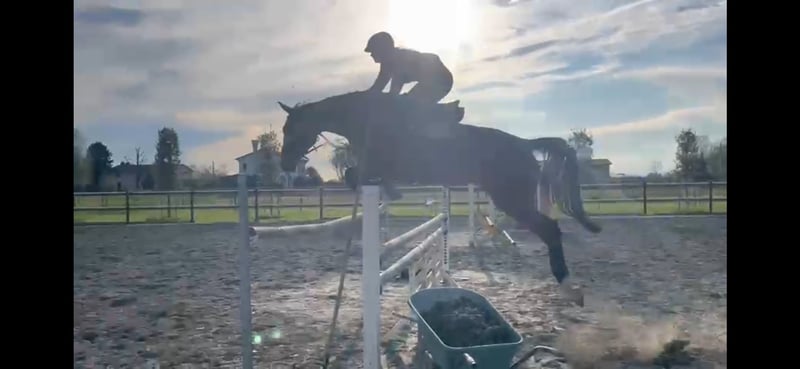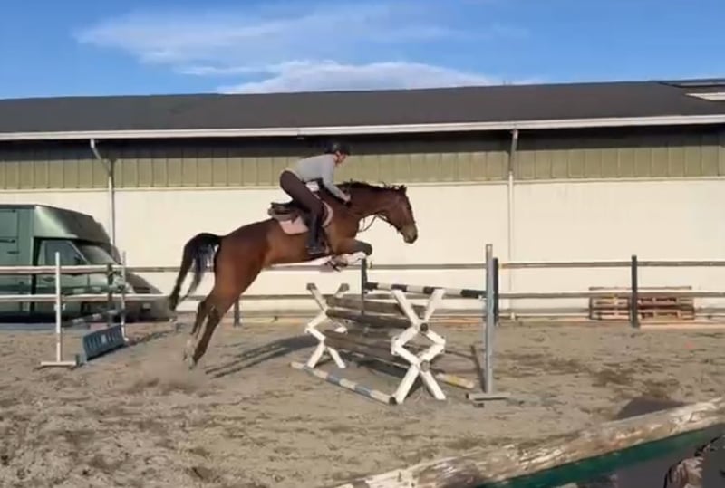 „Quick Lady“ ist eine schicke ca 170 cm große Stute. „Quibsy“ ist trotz ihres jungen Alters Super brav und unerschrocken und somit auch von schwächeren Reitern gut zu bedienen. Beim Springen mag sie einen Reiter der gerne vorwärts reitet, der Name ist Programm. Sie ist mit großem Vermögen, viel Vorsicht und Übersicht ausgestattet. Zudem ist sie schnell im Parcours und flexibel in den Wendungen. Fühlt sie sich wohl und sicher mit ihrem Reiter, rettet sie viel und verzeiht Fehler. Auch auswärts und auf dem Turnier ist sie brav und unkompliziert. Im Umgang ist sie ein echter Schatz, ist freundlich zu anderen Pferden und liebt es gestreichelt zu werden. Absolut Schmiede- und Verladefromm. A-Springen siegreich L-Springen siegreich Hat Vermögen für viel mehr Pferd steht in Italien