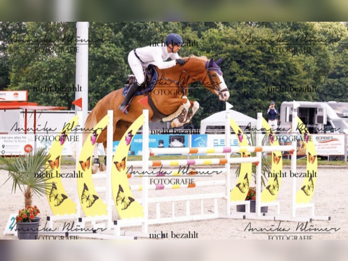 Stunning and Eye-Catching Holsteiner Mare for Sale Chestnut with four white markings and a belly spot, resembling her sire Emerald van't Ruytershof! Sire: Emerald Dam: v. Hirtentanz - Chepetto - Carpaccio Line: 1752 Direct dam line of the Qualifying de Hus Raised and bred by herself The mare foaled at age four. She was awarded district champion mare during her registration. Subsequently, she was backed and brought into sport by a young amateur rider. She has achieved numerous successes in show jumping competitions. At age six, she qualified for the German Federal Championships. At age seven, she placed up to S* level. In daily work, she is easy to ride and sensitive. For jumping courses, an experienced rider is recommended, as she is not suitable for beginners. Location: 53909 Zülpich Unfortunately, I was unable to upload pictures or videos, but shipping via WhatsApp is possible.