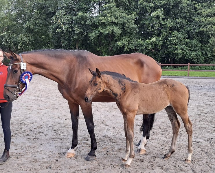 Auch Pachten möglich ! (mehr Infos unten) Zum Verkauf steht eine 2018 geborene Stute von Catch aus einer Crack C-Mutter. Sie vereint Sportlichkeit, Rittigkeit und Vererbungskraft in idealer Weise. Die Stute hat bereits mehrfach ihre Zuchtqualität unter Beweis gestellt und gesunde, typvolle Fohlen zur Welt gebracht. Sie wird zuverlässig tragend. Sportlich überzeugt sie durch ihre außergewöhnlich gute Bewegung sowie ihr sehr großes Springvermögen. Beim Stutenleistungstest im Freispringen erhielt sie die herausragende Note von 9,5, was ihre Qualität und Leistungsbereitschaft eindrucksvoll bestätigt. Züchterisch besonders interessant ist zudem ihr gekörter Halbbruder Cleverness, der im Dressursport eingesetzt wird. Dadurch ist sie ideal geeignet für die Springzucht, bietet aber ebenso bestes Potenzial für Dressur- und vielseitigkeitsorientierte Anpaarungen. Zusätzlich besteht die Option, die Stute für eine Zuchtsaison zu pachten, sofern sie im Stall verbleibt – ideal für Züchter, die gezielt mit dieser Linie arbeiten möchten, ohne sie dauerhaft zu übernehmen.
