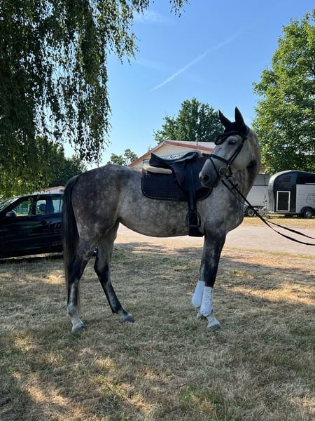 Springstute Holsteiner Jahrgang 2017 Zum Verkauf steht eine 2017 geborene Holsteiner Schimmelstute, abstammend von Crumble aus der Santhana von Lasino. Die Stute präsentiert sich mit einem korrekten Fundament, harmonischem Körperbau und ausreichend Rahmen. Sie zeigt sich rittig, aufmerksam und lernwillig und verfügt über gute Grundgangarten. Im Springen überzeugt sie mit Übersicht, Vermögen und einer vorsichtigen Einstellung, dabei stets regulierbar und konzentriert. Im täglichen Umgang ist sie brav und unkompliziert, kennt das Handling im Stall. Eine interessante Nachwuchsstute für den Amateur- oder Sporteinsatz mit Perspektive im Springsport.