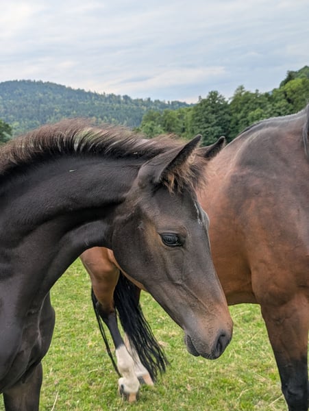 La cavalla è molto corretta, bellissima e ha un'ottima discendenza Holsteiner con un grande futuro. La madre ha gareggiato lei stessa nello sport. Il puledro è molto socievole, ottimo da maneggiare e tranquillo con il maniscalco.