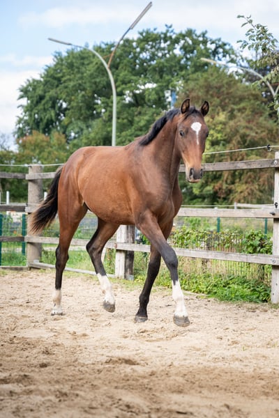Qu Vadis ist ein vielversprechender ,menschenbezogener Junghengst mit hervorragendem Charakter. Er überzeugt durch seine Freundlichkeit, Ruhe und Gelassenheit- beste Voraussetzungen, um später ein zuverlässiges Familien - oder Freizeitpferd zu werden. Sein Vater ist Quell Mexx, mütterlicherseits stammt er aus einer Lucky Champ Stute, Stamm 4815. Er ist mit 3 guten GGA ausgestattet und wächst zu Zeit in einer Herde mit Junghengsten und Wallachen auf und erhält so eine natürliche und pferdegerechte Erziehung. Halfter,Putzen und den Hufschmied kennt er bereits und zeigt sich stets brav im Umgang