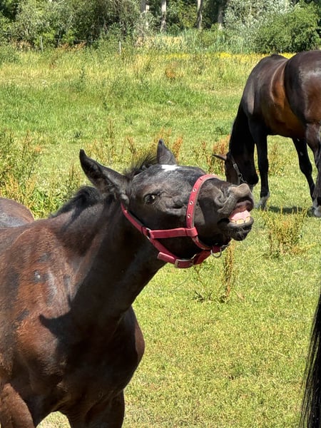 Avec Duncan Hero, nous vous présentons un poulain étalon correct, sociable et typique, dans une présentation moderne. Il se distingue par son extérieur bien proportionné et élégant, avec une tête et un cou typiques des étalons. Duncan se montre de caractère correct, amical et confiant. Un poulain avec un grand avenir sportif. Sa pleine sœur de 2 ans est en notre possession et peut également être vue sur demande. Sa mère Quira est une jument primée de district Holsteiner, issue de Quintero / Ramirado / Acord II, et provient de la lignée Holsteiner à succès 474 a. Sa sœur Farmers Girl a déjà remporté des compétitions internationales à 1,50 m avec Frank Schuttert (NL) à l'âge de 9 ans. De nombreux étalons approuvés descendent de cette lignée, tels que Bubalu VDL, Calato, Calderon, Fernando, Great Pleasure, Nimrod B, Q-Verdi, Quicktime ou Vingino. Dans le sport, des noms légendaires s'alignent également, comme Brilliante (vice-championne d'Europe avec Inken Johannsen), Bubalu VDL (médaillé d'argent par équipe aux Jeux Olympiques de Londres 2012) ou l'étalon de reproduction Q-Verdi (médaillé d'argent par équipe aux Jeux Olympiques de Londres 2012 / champion du monde et d'Europe). De plus, de nombreux chevaux de saut d'obstacles ont connu le succès dans la catégorie la plus difficile. De nombreuses juments primées lors des présentations d'élite Holsteiner. Une lignée de performance solide dans les domaines du sport et de l'élevage ! Le premier poulain étalon de Quira, né en 2014 de Mylord Carthago, a déjà été vendu avec succès lors de la Quality Auction à Zangersheide et a été bien placé à l'international à l'âge de 6 ans. Son descendant de Taloubet Z a également acquis ses premières expériences en parcours et a déjà pu se classer. En raison de sa lignée et de sa descendance exceptionnelle, Quira n'a pas été utilisée sportivement. Son père Diacontinus (Diarado / Contendro) n'a pas besoin de présentation. De nombreux descendants se distinguent régulièrement dans le grand sport, au Bundeschampionat et au Championnat du Monde des jeunes chevaux. Actuellement, 28 étalons approuvés font partie de sa descendance. Depuis des années, il est en tête du classement de la FN pour les examens de jeunes chevaux. Le grand-père Quintero Ask a été l'un des chevaux de saut les plus réussis d'Allemagne sous la conduite de Lars Bak Andersen et Rolf-Göran Bengtsson. Troisième aux Championnats du Monde des jeunes chevaux de saut à Lanaaken. Il a également remporté de nombreuses victoires et classements dans des épreuves par équipes et des Grands Prix. De plus, il a remporté trois fois le Gucci Challenge à Paris et a terminé sixième en finale de la Coupe du Monde à Göteborg. Quintero Ask laisse derrière lui 15 fils approuvés, dont le millionnaire Breitling LS (Elizabeth Madden), issu d'une mère Acord II, ainsi que de nombreux chevaux de sport victorieuses à 1,60 m.