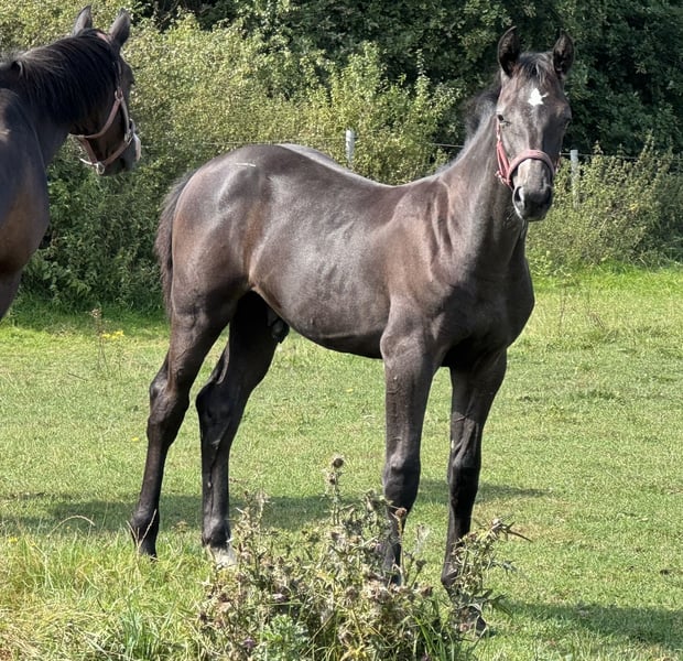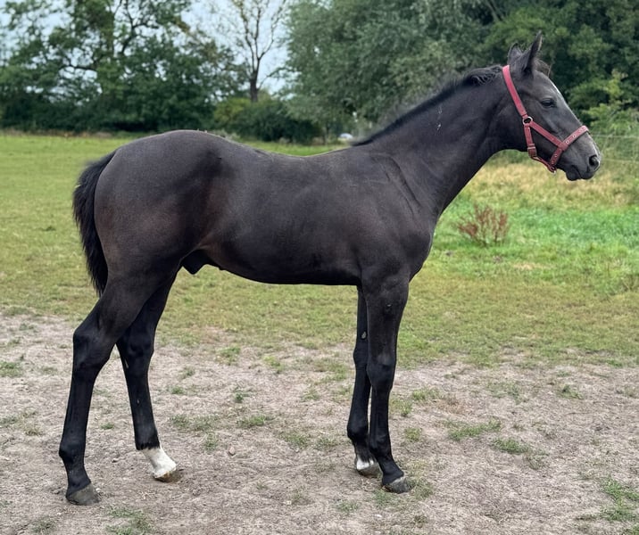 With Duncan Hero, we present a correct, people-oriented, and typy colt in a modern appearance. He impresses with his long-legged, correct conformation and stallion-typical head/neck area. Duncan presents himself with a correct character, friendly and self-confident. A foal with a great sporting future. His 2-year-old full sister is in our possession and can also be viewed upon request. Mother Quira is a Holsteiner district premium mare by Quintero / Ramirado / Acord II and comes from the successful Holsteiner line 474 a. Her sister Farmers Girl was already successful at the international 1.50m level at the age of 9 with Frank Schuttert (NL). Countless licensed stallions descend from this line, such as Bubalu VDL, Calato, Calderon, Fernando, Great Pleasure, Nimrod B, Q-Verdi, Quicktime, or Vingino. In sports, legendary names are also represented, such as Brilliante (vice European champion with Inken Johannsen), Bubalu VDL (silver medal team show jumping Olympic Games London 2012), or the stamp stallion Q-Verdi (silver medal team show jumping Olympic Games London 2012 / world and European championship gold medalist). Furthermore, there are numerous successful show jumpers in the highest classes. Additionally, there are many winning mares at Holsteiner elite mare shows. A secured performance line in the areas of sport and breeding! Quira's first colt from 2014 by Mylord Carthago was successfully auctioned at the Quality Auction in Zangersheide and was already top placed internationally at the age of 6. Her offspring by Taloubet Z has also gained initial experiences in the course and has already been able to place. Due to her lineage and outstanding progeny, Quira was not used in sports. His father Diacontinus (Diarado / Contendro) needs no introduction. Countless offspring are regularly seen in top sports, at the Bundeschampionat, and at the World Championships for young horses. Currently, 28 licensed stallions are among his descendants. For years, he has been leading the FN breeding value estimation for young horse tests.