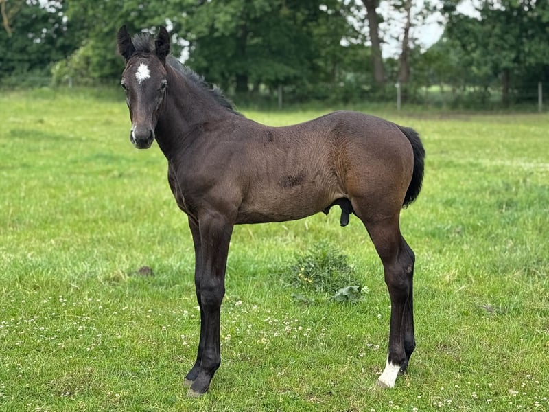 With Duncan Hero, we present a correct, people-oriented, and typy colt in a modern appearance. He impresses with his long-legged, correct conformation and stallion-typical head/neck area. Duncan presents himself with a correct character, friendly and self-confident. A foal with a great sporting future. His 2-year-old full sister is in our possession and can also be viewed upon request. Mother Quira is a Holsteiner district premium mare by Quintero / Ramirado / Acord II and comes from the successful Holsteiner line 474 a. Her sister Farmers Girl was already successful at the international 1.50m level at the age of 9 with Frank Schuttert (NL). Countless licensed stallions descend from this line, such as Bubalu VDL, Calato, Calderon, Fernando, Great Pleasure, Nimrod B, Q-Verdi, Quicktime, or Vingino. In sports, legendary names are also represented, such as Brilliante (vice European champion with Inken Johannsen), Bubalu VDL (silver medal team show jumping Olympic Games London 2012), or the stamp stallion Q-Verdi (silver medal team show jumping Olympic Games London 2012 / world and European championship gold medalist). Furthermore, there are numerous successful show jumpers in the highest classes. Additionally, there are many winning mares at Holsteiner elite mare shows. A secured performance line in the areas of sport and breeding! Quira's first colt from 2014 by Mylord Carthago was successfully auctioned at the Quality Auction in Zangersheide and was already top placed internationally at the age of 6. Her offspring by Taloubet Z has also gained initial experiences in the course and has already been able to place. Due to her lineage and outstanding progeny, Quira was not used in sports. His father Diacontinus (Diarado / Contendro) needs no introduction. Countless offspring are regularly seen in top sports, at the Bundeschampionat, and at the World Championships for young horses. Currently, 28 licensed stallions are among his descendants. For years, he has been leading the FN breeding value estimation for young horse tests.
