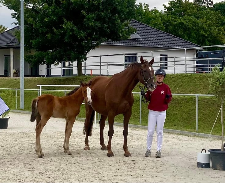 A muscular foal with 35% thoroughbred and an interesting performance-based show jumping pedigree from line 703. Cianna produced an international show jumping horse with Clarimo, born in 2017. Due to its dynamic trot, the foal was awarded premium foal status at the foal show in Bernau. https://www.horsetelex.de/horses/pedigree/2683037/mins CONTACT: Oskar Täubert Email: heikewelling@t-online.de Phone: 0170 5365863