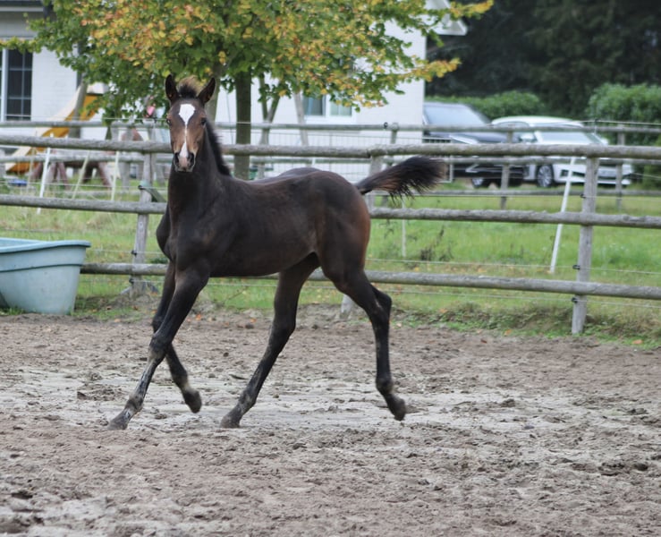 Schickes sehr typvolles, dunkelbraunes Hengstfohlen von Chacfly PS, geboren 19.06.25, aus einer Livello – Caretino Stute (Stamm Nummer 2139) zu verkaufen. Unser Hengstfohlen hat einen edlen Kopf und tolle elastische Bewegungen. Es ist eine wahre Freude ihn laufen zu sehen mit der kraftvollen, bewegungsfreudigen Intensität! Auch charakterlich ist er klasse, sehr zutraulich und lieb im Umgang! Ein Video kann gerne auf Anfrage geschickt werden. Da wir aktuell unsere Holsteiner Zucht verkleinern, schauen Sie sich auch gerne unsere weiteren Inserate an.