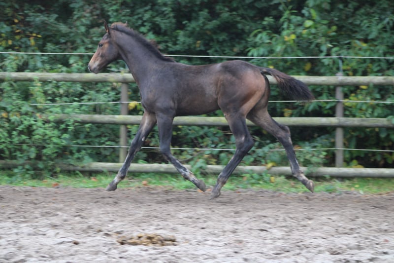 Stylish, very typy dark bay colt by Chacfly PS, born on June 19, 2025, out of a Livello – Caretino mare (dam line number 2139), for sale. Our colt has an elegant head and excellent, elastic movements. It is a true pleasure to watch him move, with powerful and lively motion! Character-wise, he is also outstanding — very confident and gentle in handling. A video can be sent upon request. Since we are currently downsizing our Holsteiner breeding program, please feel free to check out our other listings as well.