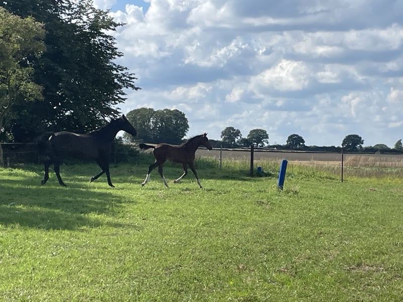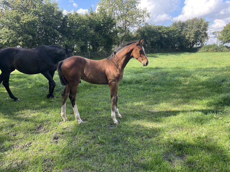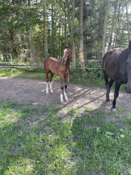 Ein echter Hingucker: Dieses moderne, edel aufgemachte Hengstfohlen überzeugt durch seinen charmanten Typ, eine wunderbare Aufrichtung und ausdrucksstarke Bewegungen. Im Galopp zeigt er bereits jetzt viel Bergauf-Tendenz, Elastizität und Raumgriff – beste Anlagen für eine sportliche Karriere. Auch im Trab und Schritt besticht er durch Takt und Lockerheit. Seine Qualität wurde bereits mit einer Fohlenprämie ausgezeichnet – ein klares Zeichen für seine außergewöhnlichen Anlagen. Die Abstammung lässt keine Wünsche offen: Chezarro – moderner Vererber mit Eleganz, Rittigkeit und sportlicher Leistung. Cormint (v. Corrado I) – bekannt für Sprungkraft, Vermögen und Leistungsbereitschaft. Paramount – bringt Rittigkeit und Verlässlichkeit in die Linie. Dieses Fohlen vereint damit sportliche Gene für den Spring- und Vielseitigkeitssport mit einem überaus sympathischen Interieur. ✔ Familienaufzucht mit viel Fürsorge ✔ Bereits Halfter gewohnt und auch halfterführig ✔ Prämiertes Fohlen – Qualität, die überzeugt Ein Nachwuchspferd, das durch Charme, Ausstrahlung und Top-Abstammung begeistert – ideal für alle, die ein Talent mit Perspektive für den Sport suchen.