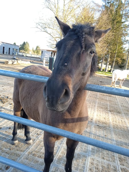 Por motivos personales, lamentablemente tengo que poner en adopción a mi potro de 6 años, Walery, un caballo Huzule. Mide aproximadamente 1,45 m, está chipado y vacunado, incluido pasaporte. Es un caballo resistente e inteligente. Reacciona de manera muy fina a las ayudas, pero también puede tener carácter propio. Por ello, necesita un dueño que sea cariñoso y paciente, pero también firme. Hemos adquirido a "Hase-Bube" en febrero de 2025 a través de un comerciante. En nuestro cuidado, ha tenido mucho tiempo para integrarse en el grupo en el paddock activo, y hemos comenzado con trabajo en suelo (longe, trabajo en libertad). Le encanta estar en la naturaleza, por lo que también hemos realizado varias caminatas. Por motivos familiares, nos vemos en la obligación de separarnos de él nuevamente. Nos gustaría que permaneciera en el paddock activo Schwabhof en Genderkingen o que encontrara otro buen lugar donde pueda quedarse a largo plazo y donde también pueda ser exigido. Según el vendedor, Walery también ha sido llevado en carro y ha realizado pequeños saltos, lo que lo convierte en un auténtico caballo polivalente. Cuando montamos en él, reaccionaba muy finamente a las ayudas. El anterior propietario le dejó cicatrices en las patas delanteras debido a malos tratos, lo que refleja claramente su historia previa. Deseamos para él a alguien con un gran corazón, que trabaje con mucho amor y paciencia con él. Se puede adquirir también el equipo (cabestro, útiles de limpieza, etc.). Si estás interesado, no dudes en contactarnos.