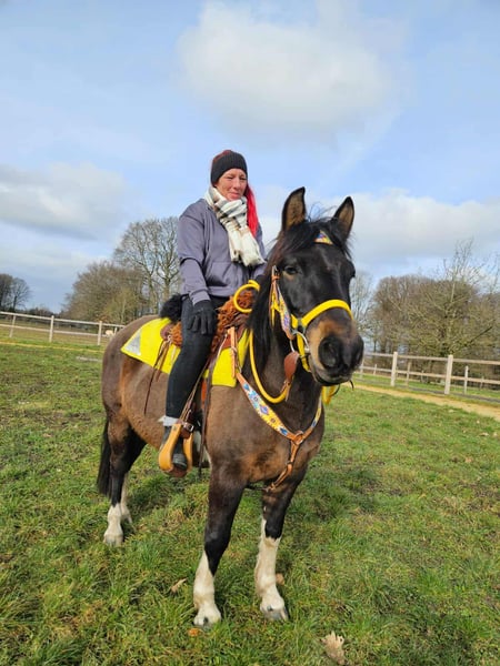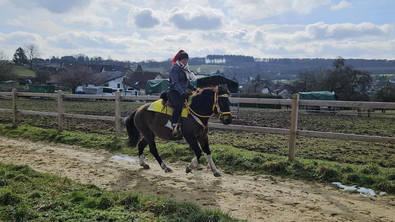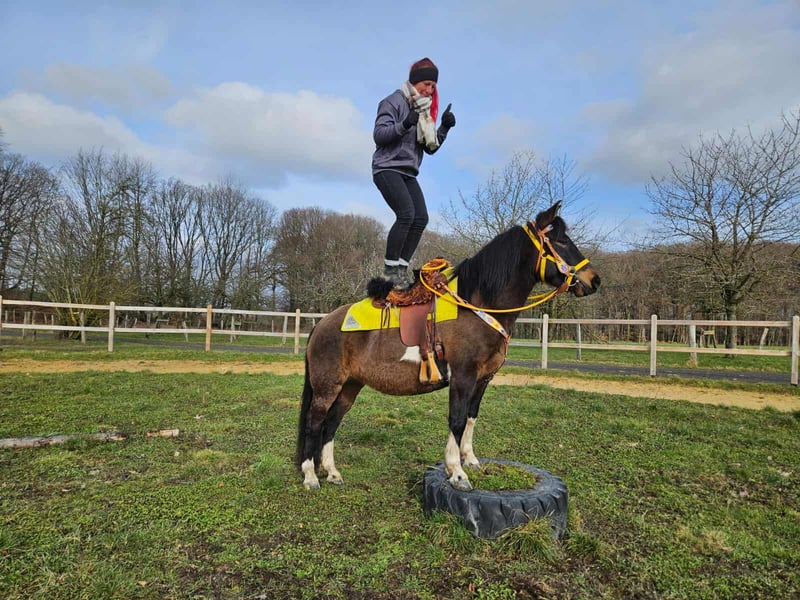 Freizeitstute – brav & zuverlässig BRITTA ein kräftiges Kleinpferd Alter: 6 Jahre Stockmaß: ca. 1,46 Preis: 5900,- mit Zubehör 6800.- AKU: vorhanden ✨ Beschreibung: Diese tolle Stute überzeugt durch ihr ausgeglichenes, freundliches Wesen und ihre ruhige Art. Im täglichen Umgang zeigt sie sich brav, menschenbezogen und unkompliziert. Putzen, Führen sowie der allgemeine Stallalltag sind problemlos und angenehm. Unter dem Sattel ist sie rittig und vermittelt ein gutes Reitgefühl. Besonders im Gelände zeigt sie sich gelassen und zuverlässig. Sie geht entspannt ins Gelände, auch für längere Ausritte gut geeignet. Auf dem Reitplatz arbeitet sie motiviert. Durch ihre angenehme Art ist sie eine ideale Partnerin für den Freizeitbereich. 🐎 Geeignet für: Freizeitreiterinnen und Freizeitreiter, die eine brave, geländesichere Stute suchen. Auch passend für entspannte Ausritte, leichte Platzarbeit und Wiedereinsteiger, die Wert auf ein ehrliches Pferd legen. 🩺 Unsere Pferde werden regelmäßig: – entwurmt – vom Schmied betreut – osteopathisch kontrolliert 🛍 Hofladen: Westernsättel, Trensen & Zubehör 🚛 Transport und Equipment auf Wunsch günstig organisierbar Unser Service: ✅ 3 Monate Umtauschrecht ✅ Proberitt: 35 €, jedes weitere Pferd 25 € (beim Kauf am selben Tag angerechnet) ✅ 100 € Sofort-Rabatt bei Abholung oder Transport am gleichen Tag ✅ Persönliche & ehrliche Beratung 📞 Anfragen bitte ausschließlich telefonisch: 0171 – 4001968 🕗 Erreichbar täglich von 8–20 Uhr ⚠️ Keine E-Mail oder WhatsApp ⚠️ Alle Angaben ohne Gewäh