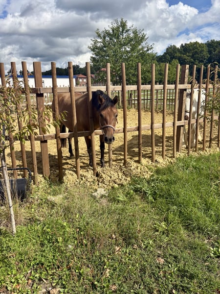 Zu verkaufen steht dieses schicke Pony. Alter: 3,5 Jahre Geschlecht: Stute Stockmaß: ca. 138 cm Rasse: Pony Huzule Diese hübsche junge Stute bringt alles mit, was man sich für ein Familienpony wünscht: Sie hat einen ausgeglichenen, lieben Charakter und ist leicht angeritten. Auf dem Platz läuft sie bereits zuverlässig in allen drei Grundgangarten und kennt auch Ausritte in der Gruppe. Mit weiterer Ausbildung wird sie ein tolles Kinderpony / Familienpony, das auch Erwachsene gut abdeckt. ✔ brav im Umgang ✔ herdenverträglich ✔ kein Ekzemer ✔ Schmied- & verladefromm ✔ geimpft & entwurmt Aktuell steht sie im Stall mit täglichem Weidegang. ➡️ Hinweis: Es handelt sich um unsere persönlichen Eindrücke – keine zugesicherten Eigenschaften. Standort: Schermbeck Kontakt: 0152 08657529 (Anruf oder WhatsApp)