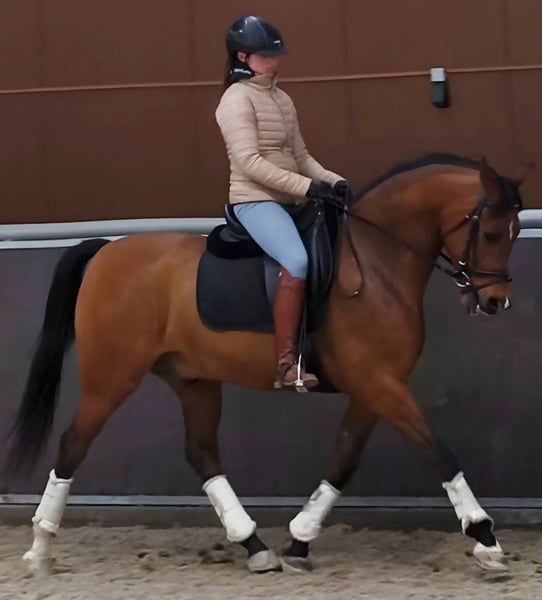 Sprzedaż - For Sale Piękny koń typu hiszpańsko-arabski, półkrwi, kasztanowaty, wykastrowany, starannie wyhodowany i zadbany. To prawdziwa perełka, mający 10 lat i mierzący 1,58 m w kłębie. Unikalny ze względu na swoją budowę i umaszczenie, a także wybitny charakter. Przyzwyczajony do różnych sytuacji i odporny na wszystko, gotowy na wszelkie testy, które mu się zaproponuje. Dobry na wszystko, z dużym sercem, poważny i dobrze jeżdżony. Chody: stęp, kłus, galop, wsparcia we wszystkich trzech chodach, przejścia, cofanie, półobroty, piruety proste i odwrotne, piruety w galopie, zadem do ściany, zmiana ręki na odosobnieniu. To koń dość zadbany, z efektownym chodem, nie cofający się ani nie przegrzewający z innymi końmi. Łagodny koń, odpowiedni dla każdego miłośnika koni lub osoby szukającej wszechstronnego konia do rekreacji, na festyny, pielgrzymki, spacery, rajdy, pracę na lonży, naukę jazdy... i cieszenia się dobrym, wszechstronnym koniem zarówno do jazdy klasycznej, jak i westernowej. 👉 Więcej informacji w wiadomości prywatnej. 📍 Lokalizacja: Madryt (Hiszpania) 🇪🇸 📹 Dostępne filmy