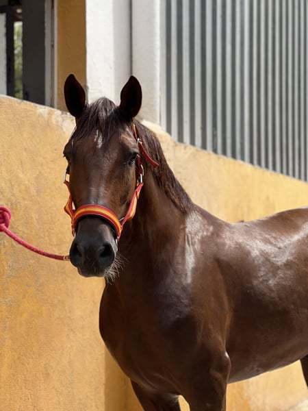 Caballo alazán castrado con excelente carácter. Siempre está dispuesto a trabajar, es un caballo perfecto para aprender y disfrutar. Ha estado compitiendo en juveniles obteniendo el tercer puesto en la liga de la Comunidad Valenciana. A Hechizero II le gustan los paseos tranquilos por el campo tanto montado como a pie a tierra, no se asusta de nada por lo que es perfecto para disfrutar.