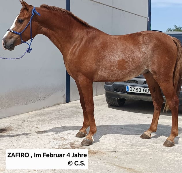 ZAFIRO Mal ein sicher EINZIGARTIGER FALL in meiner Karriere 😅..grins. Schon länger war ich an diesem faszinierenden Burschen dran, in dem ich sehr viel Potential, gerade für die WORKING EQUITATION sehe. Und ihr alle kennt mich, Pferde mit speziellen Farben ziehen mich magisch an..😎 Dieser hier mit der Klasse Fuchsfarbe und ein bissl geschimmelt.. Doch er wird kein Schimmel, DAS BLEIBT SO. Hier eine sehr begehrte, seltene Farbe. Geboren am 10.02.22, Hispanoaraber, bereits 1.55, bereits kastriert. Herrlich, da könnte ich gleich mit durchstarten.... Wer ihn auch so magisch anzieht, schreibt mich an auf WhatsApp 0034 670 097 903 Eure Carmen
