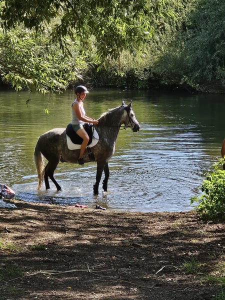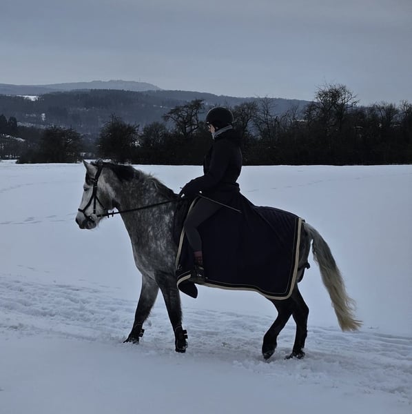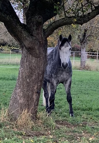 Verkaufe jungen Hispano-Araber-Wallach Zum Verkauf steht ein hübscher und vielseitiger Hispano-Araber-Wallach, geboren im Jahr 2020. Mit einem Stockmaß von 155 cm ist er kompakt , deckt gut ab und äußerst sitzbequem. Er bringt eine natürliche Versammlungsbereitschaft bei guten Grundgangarten mit. Wir haben im Letzten Sommer mit den Grundlagen zur Working Equitation angefangen, hier sehe ich noch sehr viel Potenzial. Caramelo geht sowohl alleine als auch in der Gruppe ins Gelände, kennt Halle und Platz, Hängerfahren absolut brav, schmiedefromm( momentan barhuf, war im Sommer vorne beschlagen, geht aber auch problemlos ohne). Caramelo ist kein Anfängerpferd, sondern braucht einen erfahrenen Reiter, da er in manchen Situation schon sehr schreckhaft reagieren kann, jedoch nie kopflos. Kennt Kinder, Hunde, landwirtschaftliche Geräte und Straßenverkehr, geht problemlos ins Wasser und war auch schon beim Spalierstehen dabei. Ist geimpft und entwurmt, Zähne auch im letzen Jahr gemacht. Kennt sowohl Offenstall als auch Box, täglich. Werdegang Verkauft wird er aus Zeitmangel, Platz vor Preis Bei Interesse oder für weitere Informationen stehe ich gerne zur Verfügung. Eine Besichtigung und Proberitte sind nach Vereinbarung möglich.