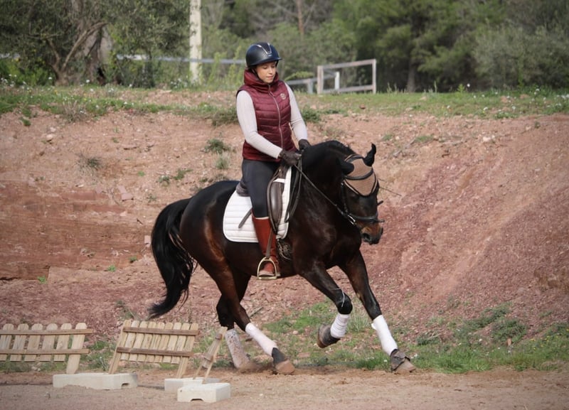 Absolut zuverlässig unterwegs ist dieser schicke Wallach in dunkler Jacke, und zwar sowohl auf dem Platz als auch im Gelände! TROYA ist in allen Lebensbereichen ein treuer Begleiter, menschenbezogen, leicht zu reiten, top erzogen, verträglich mit Artgenossen… es gibt wohl kaum eine positive Aussage, die nicht auf diesen tollen Wallach zutrifft. Nur ein tolles Zuhause fehlt jetzt noch zu seinem großen Glück! Also wer möchte diesem schicken Kerl einen tollen Platz bieten? TROYA ist korrekt in den Grundgangarten geritten, beherrscht Schulterherein und Schenkelweichen und wird weiterhin von mir professionell trainiert, gerade auch im Hinblick auf die Working Equitation. Er ist bereits mit einigen der Hindernissen gut vertraut und zeigt sich dort mutig und sicher. Zudem habe ich auch mit der Arbeit mit der Garrocha begonnen. TROYA geht sehr gut in der Gruppe, aber auch alleine ins Gelände. TROYA ist Hispano-Araber mit einem spanischen Pass. Standort Valencia, Spanien.