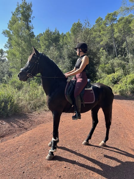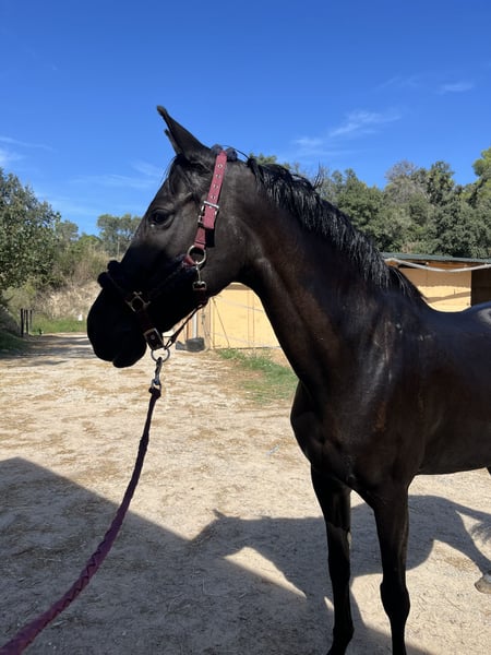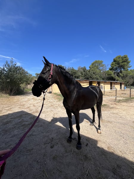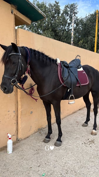 Passport Main Characteristics: - Breed: Hispano-Arabian - Sex: Mare - Year of Birth: 2010 - Color: Black - Specialties: Dressage and working cow horse This magnificent mare combines beauty, nobility, and discipline, making her an ideal partner for riders seeking a reliable companion. Walk, trot, canter Flexions and lateral movements She has participated in fairs and pilgrimages. Very good in the field!