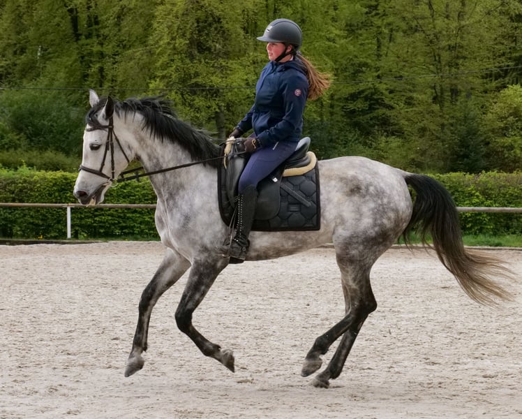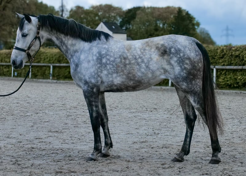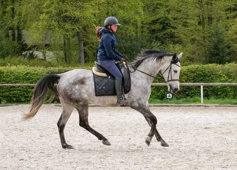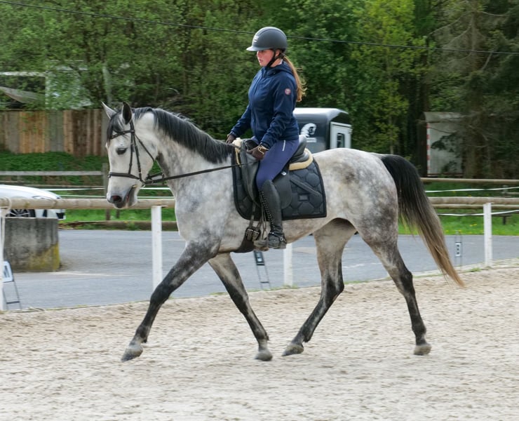 Name: Idilica Rasse: Hispano Araber Geschlecht: Stute Geburtsdatum: 09.10.2019 Alter: 7 Stockmaß: 1.53m Farbe: Schimmel Abstammung: mit Abstammungsnachweis Charakter: neugierig, intelligent, lernwillig, geduldig, gelassen Ausbildung/Eignung: geritten, Freizeit, Dressur, Springen, Working Equitation, Wanderreiten, Distanzreiten Geländeerfahrung: nervenstark, zuverlässig, unerschrocken, alleine und in der Gruppe Gesundheit: entwurmt, geimpft, Barhufer, ekzemfrei, Zähne kontrolliert, osteopathisch behandelt Haltung: Box, Offenstall Besonderheiten: sehr sitzbequem, schmiede und verladefromm, herdenverträglich Die genannten Eigenschaften beruhen auf unserer persönlichen Einschätzung und stellen keine zugesicherten Merkmale dar. Preis: 6900 (Bruttopreis) Haben wir ihr Interesse geweckt? Um Ihnen einen besseren Eindruck von Idilica zu geben, senden wir Ihnen sehr gerne Ihr Reitvideo zu. Selbstverständlich stehen wir Ihnen für eine ausführliche Beschreibung des Pferdes, persönliche Beratung und zur Beantwortung aller Ihrer Fragen auch telefonisch zur Verfügung. Bitte schreiben Sie uns hierfür jederzeit eine WhatsApp Nachricht, oder rufen unter folgender Telefonnummer an: +49 15119487595 Unsere Telefonzeiten sind täglich von 7:00 - 13:30 sowie ab 20:00Uhr. Wir freuen uns über Ihre Kontaktaufnahme! Eine klinische oder Röntgenologische Ankaufsuntersuchung kann gerne vom Tierarzt Ihrer Wahl durchgeführt werden. Natürlich kann Idilica sicher und komfortabel in ihr neues Zuhause geliefert werden. Wir kümmern uns um alle notwendigen Vorbereitungen und den Transport, damit Ihr neues Pferd stressfrei, gut betreut, versichert und wohlbehalten im neuen Zuhause ankommt. Zurzeit präsentieren wir eine sorgfältig ausgewählte Vielfalt an Verkaufspferden. Bei uns finden Sie garantiert Ihr Traumpferd. Besuchen Sie uns auch gerne auf unserer Homepage unter: www.marvinsroyalhorses.de. Sehr geehrte Kunden, gerne stellen wir Ihnen unsere Pferde vor und führen, putzen, satteln, longieren, Bodenarbeit sowie Probereiten in der Reithalle, auf dem Platz oder im Gelände ist Ihnen möglich, um Ihr neues Familienmitglied näher kennenzulernen. Dieses kostet für ein Pferd 40€, für jedes weitere 30€ und wird beim Kauf wieder erstattet. Unsere Adresse lautet: Grube Ferdinand 50 53577 Neustadt Wied Google Maps: marvinsroyalhorses