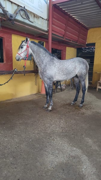 In vendita c'è un bellissimo stallone Hispano-arabo del 2021. Con un'altezza di circa 158 cm e un'affascinante colorazione grigia, attira tutti gli sguardi. Questo stallone talentuoso è già stato montato nella Doma Vaquera e mostra un grande potenziale in questa disciplina. I suoi movimenti sono agili ed eleganti, rendendolo un partner ideale per cavalieri ambiziosi. È molto docile sia nel maneggio che nell'allenamento e mostra una personalità amichevole e aperta. Lo stallone è adatto sia per cavalieri esperti che per coloro che desiderano avvicinarsi alla Doma Vaquera. Per ulteriori informazioni o domande, sono a vostra disposizione. Venite a trovarci e convincetevi voi stessi di questo cavallo straordinario! Il cavallo si trova attualmente in Spagna. Su richiesta, possiamo organizzare un appuntamento per la visita. Inoltre, può essere facilmente castrato su richiesta.