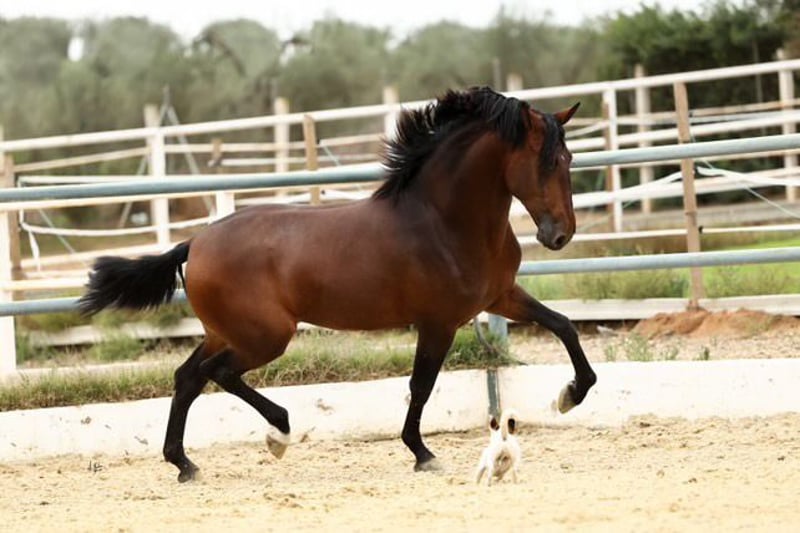 JAMINO TORRELUNA We present: JAMINO TORRELUNA KST 4 years old, currently 1.72 m and a beautiful bay stallion. We have provided his pedigree in the photos, grandfathers Remache XIII and YACO TORRELUNA. He has incredibly great movements and a great exterior. More info : + 491715284965 Stud fee: 1000€ plus veterinary costs (insemination and ultrasound)