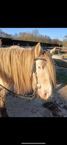 We are offering our friendly Welsh Cob mare for sale – a true gem with a rare coat color and striking green eyes. She is well-behaved, enjoys having her hooves picked out, and is completely accustomed to the farrier and loading into the trailer. The mare is slightly sensitive on her legs but otherwise healthy, ridden, and versatile – suitable for children’s pony riding as well as for breeding, making her especially interesting for breeders. Highlights: - Calm and affectionate demeanor - Ridden and child-friendly - Easy to care for - Farrier- and trailer-loading friendly - Rare color with green eyes – an absolute eye-catcher A wonderful pony for breeding or leisure riding – come and get to know her!
