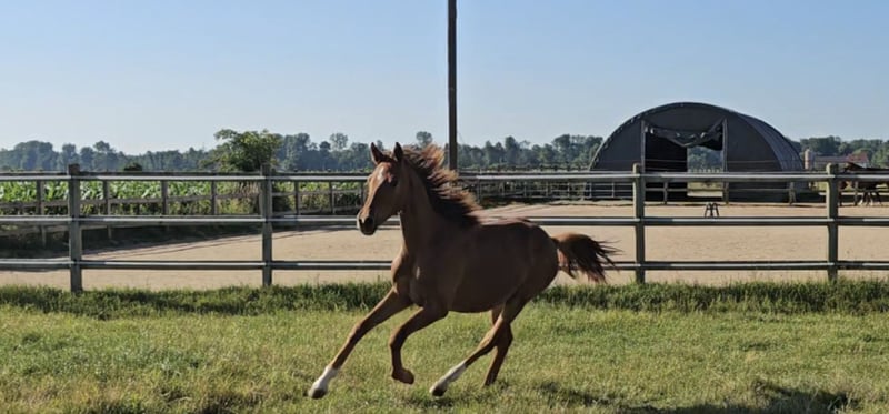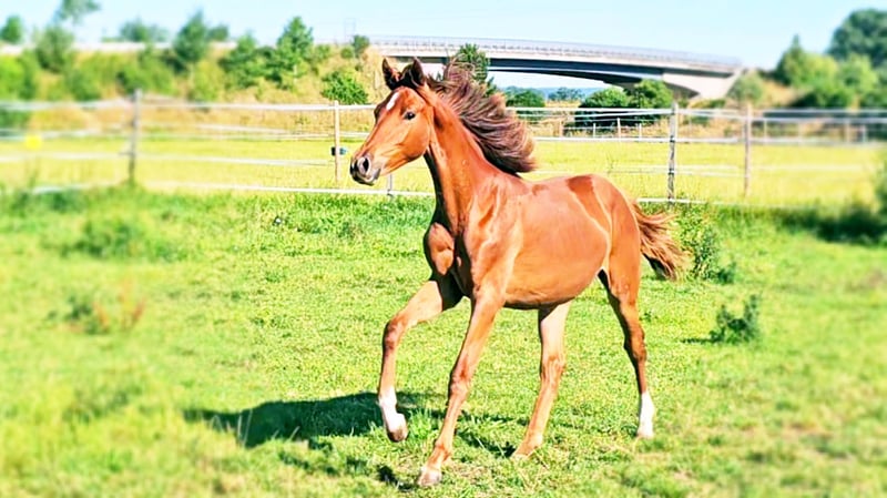 Puledra da salto di aprile 2024! Questa puledra di un anno è particolarmente ben riuscita. Ha una testa bellissima, uno sguardo attento e vigile, ottimi movimenti e una meccanica molto bella ed elegante. Saltare - questo lo sanno fare i suoi genitori e nonni. Un tocco di sangue nel pedigree assicura il fuoco nel cuore di questa bella signora. Il padre Devil 2000 Z incarna l'essenza dell'atleta moderno e presenta sorprendenti somiglianze con il suo fenomenale padre Dominator 2000 Z. Fin dal primo momento ci ha affascinato con la sua imponente presenza, la sua straordinaria capacità e il suo stile agile e leggero. La madre, China Touch Hero, è anche la madre di Sea Coast Don't Touch Tiji Hero, il padre del nostro superstar Dourkhan Hero Z. Vediamo questa sportiva signora in futuro nel salto ostacoli, così come nel completo. Siamo lieti di ricevere il vostro contatto per un incontro personale con Domina ZPF.