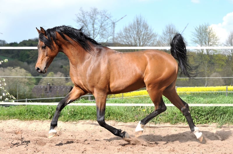 Nato nel 1999 e cresciuto a Tersk. La foto di copertina lo ritrae all'età di 22 anni. La sua fattrice ha dato alla luce 15 puledri vivi e ha vissuto fino a 34 anni. 50 figli impressionano per il loro movimento, la cavalcabilità, la disponibilità a esibirsi e le buone basi. I suoi figli e figlie hanno successo nel dressage fino al livello avanzato (S) e nell'endurance fino al LDR. L'associazione allevatoriale gli ha conferito il titolo d'élite di VAZP sulla base delle prestazioni della sua progenie. La progenie di Kamerton è visibile anche nelle foto. Informazioni dettagliate sulle prestazioni della sua progenie sono disponibili sul nostro sito web: www.vogelsberg-araber.de Foto: Svenja Verheyen, Sabinne Althaus, Christa Dott, Gudrun Waiditschka, Stefanie Nicolin