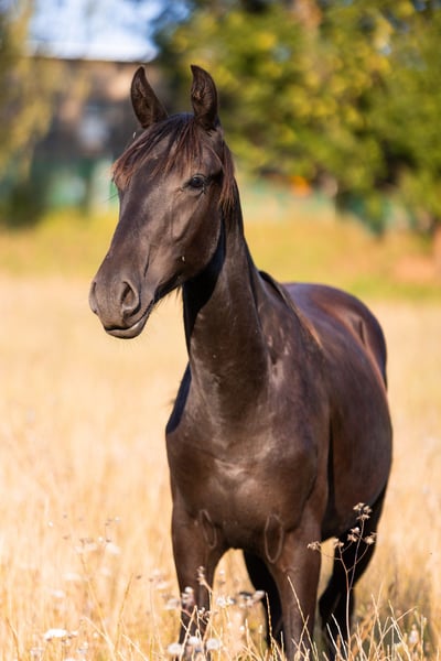 Discover a unique connection with the Karachay Horse 💞 Six years ago, we discovered this rare, hardy, and empathetic horse breed from the Caucasus. Today, we have ten of these remarkable horses on our small ranch near the Krkonoše Mountains in the Czech Republic. In 2023, we imported the stunning stallion Ichsan, and we are now offering his first foals! Isposob is a black, one-year-old gelding. He is healthy, friendly, gentle, and cooperative. His ancestors have achieved notable results in endurance sport. Karachay horses are especially talented in endurance riding, but they also excel in Western riding (ranch work), carriage driving, jumping, and are beautiful for dressage, thanks to their elegant and smooth movement. All our horses are kept on pasture year-round, with minimal feeding requirements. We honor the principles of horsemanship and strive to develop respectful friendships between horses and humans. We are eager to find sensible people who can give our foal a happy home and a fulfilling life. For more information, visit - https://www.rancvlkovsko.cz/l/isposob-2/ (Last three photographs: Father Ichsan 11, Mother Dalekaja, Mother & Father together)
