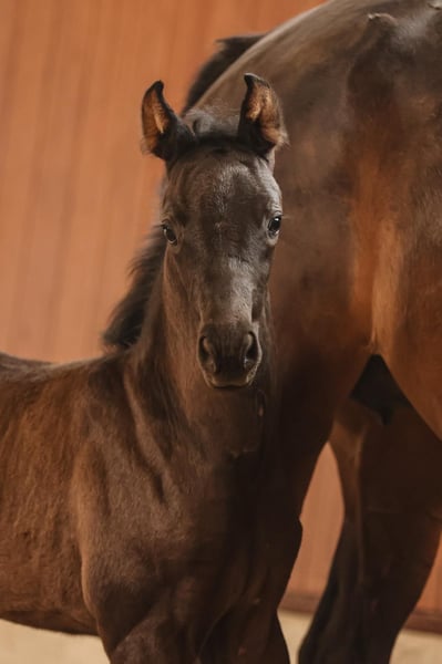 Dit mooie zwarte merrieveulen is geboren op 5 mei 2025. Het is afstammend van Vivaldos (top dressuurhengst van Vivaldi/Desperados-Brentano II, die in 2021 de prijswinnaar op de Vechta veulenmarkt bracht, evenals het jaar daarvoor meerdere hooggeprijsde veulens) uit een moeder van Florenz. Grootvader Carnando van de Tannenhof stal heeft St. Georg en Intermediair I succesvol onder Oliver Luze gelopen. Uit de moederlijn komen verder succesvolle dressuur- en springpaarden, elite- en verenigingspremiestuten, evenals meerdere PSI-paarden. Een veulen met uitstekende bewegingen, edel en beeldschoon. Prijs alleen op aanvraag, aanvragen uitsluitend telefonisch.