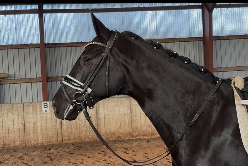 Stunning Black Beauty from an excellent bloodline! Beautiful black mare of very good quality for sale! Her three above-average gaits and friendly character distinguish this young lady, who has already produced a wonderful foal by Secret. Completely easy to handle and resilient! Also suitable for talented young riders. Already vaccinated. The mare is crouped, hence offered below market value. For questions, please call or WhatsApp, no emails. 01602428444