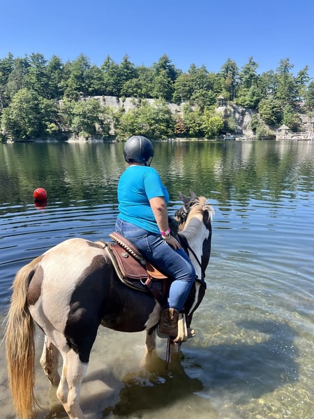 "AVAILABLE ON ONLINE HORSE AUCTION AT www DOT MagicHorseAuction DOT com BIDDING OPEN NOW thru TUESDAY | October 28TH! - BUY IT NOW AVAILABLE! *Final price will be determined on auction site* CONSIGNOR CONTACT INFO: Hannah Zorn 917-821-4140 LOCATION: Lebanon, NJ "Cadbury is a very fun horse looking for his next adventure partner. He is a chocolate silver dapple pinto spotted mountain horse gelding who is 14.2hh and 12 years old. He’s a go anywhere trail horse who’s been camping and trail ridden extensively. Good with dogs, livestock, bikes, cars, wheelchairs, rock climbers, and motorcycles. Goes over grates, logs, bridges, boulders and through brush, mud, or water without hassle. Bathes, ties, loads, trailers, crossties, lunges, stands for saddling, and bridles easily. Rides in front or in back, will go out alone and not herd bound and doesn't rush back to the trailer. No kick, buck, rear, bolt or strike, and very little spook. Gets along with mares and geldings, can be stalled or out 24/7. He's a forward horse and is completely safe for an intermediate rider or would be an excellent horse for a confident kid who can ride. He blows occasionally when not under saddle but it’s just a sound effect. He’s not worried and he doesn’t do it under saddle. I ride him in a hackamore but can be ridden in a bit too. I've owned him 2 1/2 years, and he's had no soundness or health issues. He's UTD on teeth, worming, and rabies vaccination. Has a scar on his rear cornet but been seen by my vet and it's cosmetic only and causes no issues. He's had professional training in the past and is a fun trail machine!