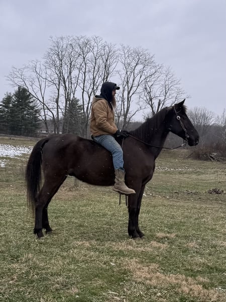 "AVAILABLE ON ONLINE HORSE AUCTION AT www.MagicHorseAuction.com BIDDING OPEN NOW thru TUESDAY | FEBRUARY 3RD! BUY IT NOW AVAILABLE! *Final price will be determined on auction site* CONSIGNOR CONTACT INFO: Brandenburg Stables : Zach Brandenburg #513-508-3684 LOCATION: Moscow, Ohio Shadow is a handsome black Kentucky mountain gelding that is 14 years old and stands 15 hands tall. This is a seasoned trail horse that has been there done that and it is absolute drama free.. This is a very willing horse that aim to please hand is truly just like having the day off of work to be around.. he has a smooth gait and is very easy to sit, he listens well am never retaliates or 2nd guesses his rider. Just point and go. He is an easy keeper and gets along with other livestock. Shadow has been trail ridden and is traffic safe. If you’re looking for low maintenance and easy to enjoy here he is!