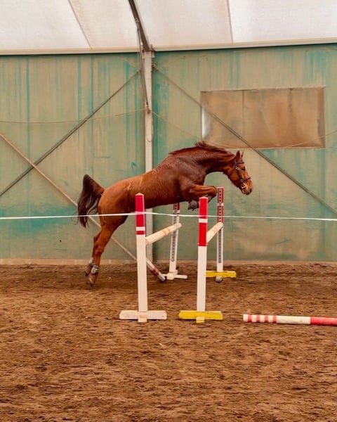 A 5-year-old Kisbér-bred gelding is looking for a new home. He takes contact easily, changes lead in canter over poles at a basic level, is brave in jumping work, and performs the exercises at the requested pace. When free jumping, he shows exceptional talent, and under saddle he lifts himself nicely; he is also characterized by light, clean basic gaits. His sire competed at 1.10 m, and his dam sire competed at 1.30 m. From the ground he is also a real sweetheart: easy to tie, lead, gives his legs, and is very people-oriented. I recommend him as a first horse, as well as for leisure competitions, show jumping, and dressage; he would certainly also do well in eventing. He can be tried in Budapest by prior appointment.