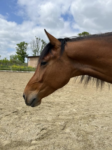 5-jähriger, neugieriger und freundlicher Kisberi-Wallach sucht seinen Menschen. Formás Figura bedeutet „schöne Figur“. Nomen est omen, das hat er, mit seinem schlanken, langbeinigen, elastischen Körperbau! „Fiffy“ ist immer der erste am Zaun, begrüßt jeden Menschen mit freundlicher Neugier und ist dabei nie grob. Er hat in den zwei Jahren in unserer Familie viele Herzen von Kindern und Eltern mit seinem Charme erobert und viele verschiedene Aufgaben kennengelernt. Er wurde schonend und mit Geduld weiter ausgebildet mit großem Augenmerk auf Takt und Losgelassenheit und biomechanisch gesunde Bewegungsmuster. Auch hat er in alle Bereiche meines Unterrichts hineingeschnuppert, hat verschiedene Arten von Bodenarbeit, Freiarbeit, Longetraining, Freispringen, Stangenarbeit, Trail uvm. Kennengelernt. Er wurde mit und ohne Gebiss und Sattel geritten, auch am Halsring oder nur mit 2 Gerten. Er geht brav als Handpferd und bei Spazierritten ins Gelände, braucht hier aber eine sichere und gelassene Führung und weitere Routine. Sein Hilfenverständnis ist gut und fein, er geht alle GGA am Reitplatz. Wir suchen für ihn eine/n leichte/n ReiterIn mit Jungpferdeerfahrung, die sich seiner weiteren Reitpferdeausbildung mit Geduld, Einfühlungsvermögen und Fachkompetenz widmet. Außerdem wünschen wir uns für ihn Kumpels, mit denen er seine große Spielfreude mit viel Bewegungsfreiheit ausleben darf. Das können wir ihm nicht bieten. Da meine Tochter nun maturiert und viel zu wenig Zeit für ihn hat und er für meine SchülerInnen zu groß und bewegungsstark ist, suchen wir eine/n neue/n beste/n MenschfreundIn für ihn. Wir geben ihn nur ab, wenn wirklich alles passt.