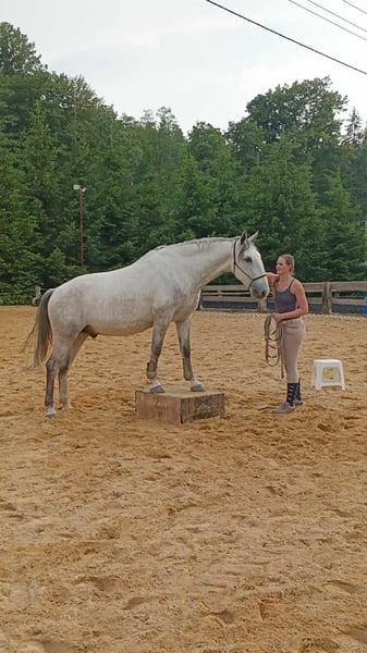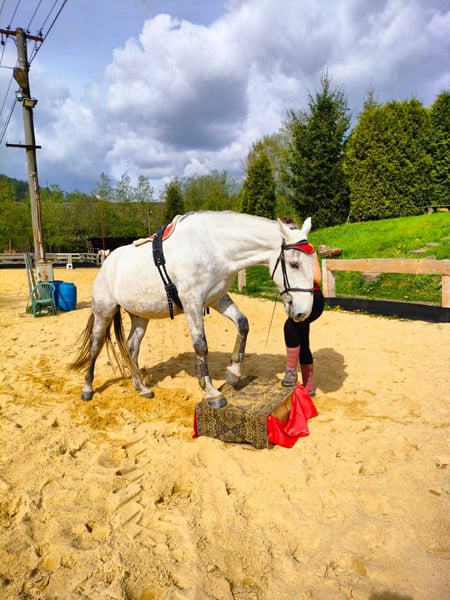 Na sprzedaż: 7-letni ogier kladruber, piękny biały koń o eleganckim, klasycznym wyglądzie typowym dla rasy. • Ujeżdżenie: szkolenie na poziomie L, w przygotowaniu do poziomu S. Przejścia piaf nie są jeszcze w pełni potwierdzone. • Zdrowie: czyste zdjęcia RTG, w tym kręgosłup, koń zdrowy i bez dolegliwości. Nigdy nie zdiagnozowano u niego wrzodów (lecz leczony jako wrażliwy koń na wszelki wypadek). Nie cierpi na świąd mugowy. Dwa dodatkowe zęby – typowe dla rasy, sprawdzone przez specjalistów i w porządku. • Temperament: łagodny, niezawodny, lecz naturalnie energiczny i nieco żywiołowy (w ramach spokojnego typu kladruber). Najlepiej dla pewnego siebie jeźdźca, który ceni sobie reagującego konia. • Zachowanie: łatwy w terenie, nie dominujący ani uległy. Dobrze dogaduje się z ogierami i klaczami (najlepiej jako jedyny ogier w towarzystwie klaczy). • Pod siodłem: bezpieczny na przejażdżkach, sam lub w grupie – może iść pierwszy, ostatni lub obok. Spokojny, nie kopie ani nie rżeni. Po kilku dniach odpoczynku najlepiej pozwolić mu się rozprostować lub przejechać rekreacyjnie przed kolejnym treningiem. • Obsługa: świetny z podkuwaczem, weterynarzem, do pielęgnacji itp. ładne, mocne kopyta. Szukam kochającego domu, z regularną pracą i wypasem. 💰 Cena: do negocjacji dla odpowiedniego domu. Zależy mi na jego miejscu docelowym i chętnie pozostanę w kontakcie z nowym właścicielem. 📩 Więcej zdjęć i filmów dostępnych na życzenie przez WhatsApp.