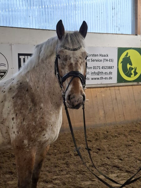 Unser Schulpferd Janosch (im Pferdepass heißt er Hiren) sucht ein neues zu Hause, da er uns 6 Jahre lang treue und ehrliche Dienste im Schulbetrieb bewiesen hat und wir nun der Meinung sind, dass es jetzt der richtige Zeitpunkt ist, ihn in seine wohlverdiente Schulpferderente zu schicken. Bei uns im Schulbetrieb ist Janosch an der Longe gegangen, wir haben mit ihm zwischendurch voltigiert (nicht regelmäßig), er macht kleine Sprünge und geht gerne ausreiten, ohne Sattel Reiten ist ebenfalls kein Problem. Er ist eher von der gemütlichen Sorte, zu Menschen ist Janosch immer freundlich und aufgeschlossen. Tierarzt und Hufschmied sind ebenfalls kein Problem . Bei uns geht er täglich aufs Paddock / Weide. Mit anderen Pferden ist er sozialverträglich. Bei uns wurde er in der ganzen Zeit nie eingedeckt. Er ist 4x beschlagen, regelmäßig geimpft und entwurmt, Pferdepass ist vorhanden. Wir können uns vorstellen, dass Janosch auch in einem Offenstall klarkommt. Ein Kennenlernen und Probereiten ist nach Absprache jederzeit möglich Rasse : Knabstrupper Mix mit polnischem Pass Größe : ca. 170cm Alter: 10 Jahre