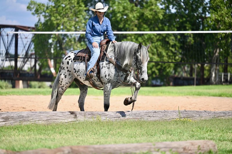 🍁𝒕𝒉𝒆 𝐅𝐀𝐋𝐋 𝑺𝒑𝒆𝒄𝒕𝒂𝒄𝒖𝒍𝒂𝒓🍁 Happening now thru MONDAY | SEPTEMBER 22nd - Available EXCLUSIVELY on HorseBid's website! For more details and to register visit: www.Horsebid.com CONSIGNOR CONTACT: Jordan Brown 502-565-6621 LOCATION: Waco Texas BREED: Knabstrupper REGISTERED: No COLOR: Leopard Appaloosa HEIGHT: 16 AGE: 10 GENDER: Gelding If handsome and kind are at the top of your list, this is your guy!! Achilles is a magnificent 10 year old Knabstupper gelding standing a true 16 hands with a classy, unique look, tons of bone, and plenty of color!! The ultimate trail and family horse who’s been there and done that with the demeanor to suit any rider. Achilles has spent the majority of his life as a ranch mount; saddled way before daylight and most days coming in well after the sun goes back down. He has seen all types of terrain from Montana to Texas and everything in between including but not limited to: deep washes, steep mountains, thick brush, mud bogs, rivers/creeks/streams, snow, ice, wind & rain. Rides english as well! Very enjoyable to school dressage or pop over some low level jumps if you get a wild hair! Many many miles and lots of wet saddle pads have prepared him for nearly any situation you may find yourself in. He keeps a cool head and has the most forgiving and friendly disposition you could ask for. Walks out on a loose rein, has a plush jog, floating extended trot, and a rolling canter. Neck reins and moves off leg, side passes to open and close gates, crosses bridges, navigates narrow paths with ease, doesn’t mind traffic, machinery, dogs, or children. In fact he ADORES children. Stack as many as you like on him and he will gladly pack them around at a gentle walk. Terrific ground manners, an absolute dream to shoe, and loves nothing more than a good bubble bath! Easy to clip, groom, saddle, and mount. His resumé, no matter how impressive, is unmatched with his one-of-a-kind personality… this horse brightens your day everytime you come to the barn. He will greet you with a nicker from the stall or canter to the pasture gate. Not a mean bone in his body and a perfect gentleman to be around and handle in any capacity. You won’t find a horse that enjoys his job as much as this guy! No nonsense and eager to please every time you pull him out whether it’s every morning before daylight or once a month! We would love to tell you more about this phenomenal horse! Call or text Jordan at (502) 565-6621. Shipping available worldwide