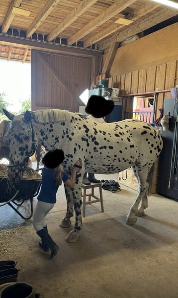 Beautiful Knabstrupper gelding, 13 years old, 16.1 hh, well-handled, seeking a new home. Due to a change in riding activities for health reasons, he is being offered along with all accessories (saddle, bridle, various halters, blankets, hoof boots, etc.). Monti is an absolute sweetheart, extremely honest and well-behaved. Fully confident in the terrain and well-trained. He is compatible with everything — geldings and mares, dogs, children, and all the everyday encounters. Low in the hierarchy, herd-compatible, and unshod. He is looking for a family-oriented home where he will be seen and loved. Due to a mild form of ataxia (narrowing of 2/3 of the cervical vertebrae), which has been present throughout his life, he is not suitable as a sport horse and will not be sold as such. In daily life, he has no restrictions and is otherwise healthy. He is familiar with both terrain and riding arena, groundwork, guided children's riding lessons, and was broken in as a young horse. He has also been driven in a pair as a lead horse (though I no longer drive him). Further information gladly available in person. School riding and commercial dealers are not suitable! Monti will only be placed in the best hands and if the fit is right.