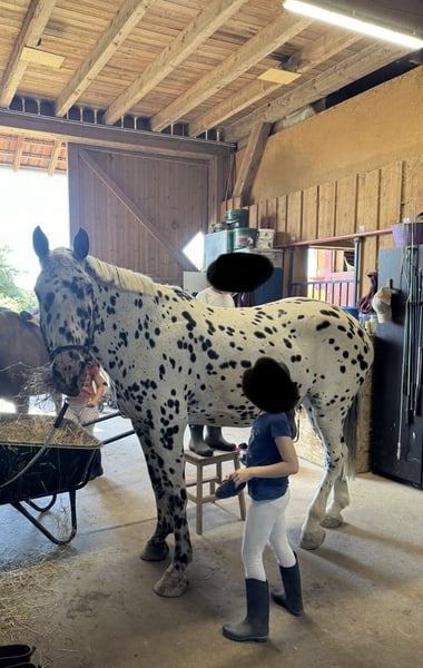 Magnifique hongre Knabstrupper, âgé de 13 ans, 1,65 m, en parfait état, cherche une nouvelle famille. Suite à une cessation de la pratique sportive pour raisons de santé, il est à céder avec tout son équipement (selle, bridon, diverses têtes, couvertures, fers à cheval, etc.). Monti est une âme exceptionnelle, extrêmement gentil et bien dressé. Il est totalement sûr en terrain varié et bien entraîné. Compatibilité avec tous : mâles et femelles, chiens, enfants et tout ce qui peut croiser son chemin au quotidien. Il est de rang inférieur, compatible avec un groupe et non ferré. Il recherche un foyer avec un environnement familial où il sera vu et aimé. En raison d’une légère ataxie (rétrécissement au niveau de 2/3 des vertèbres cervicales) qui l’accompagne depuis toujours, il ne peut pas être utilisé en compétition sportive et ne sera pas vendu comme tel. En dehors de cela, il n’a aucune limitation dans sa vie quotidienne et est en bonne santé. Il connaît aussi bien le terrain que la carrière, le travail à pied, l’enseignement monté pour enfants, a été ferré en jeune cheval et a participé à des tournages en attelage comme cheval guide (je ne l’ai cependant plus monté). Plus d’informations volontiers en personne. Les écoles et les marchands ne sont pas souhaités ! Monti sera confié uniquement à des mains de confiance, si la situation est vraiment adaptée.