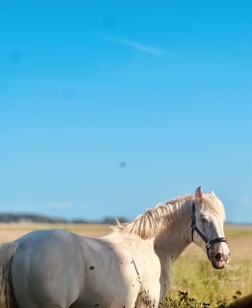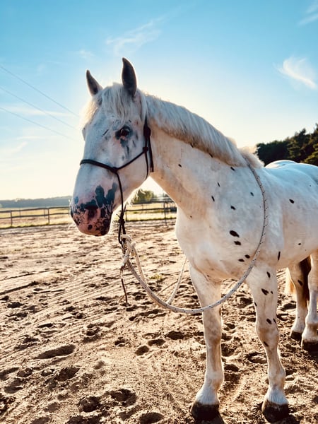 Unser wunderschöner 3-jähriger Wallach namens Joey aus einer Knabstrupper–Noriker-Anpaarung sucht nun seinen Menschen fürs Leben. Mit seiner außergewöhnlichen Erscheinung ist er ein absoluter Blickfang. Er wurde bei uns geboren, liebevoll aufgezogen und durfte in Ruhe zu einem kräftigen und gesundem Jungpferd heranwachsen. Der tägliche Umgang ist ihm natürlich bekannt, da die Pferde bei uns am Haus, als Familienmitglieder aufwachsen. Er ist gut sozialisiert aber auch das alleine sein kennt er. Joey ist bereits vom Boden aus etwas gearbeitet und angeritten. Beim Anreiten zeigte er sich unkompliziert und meisterte dies gut. Er ist grundsätzlich ein selbstbewusstes Pferd. Er sucht daher einen konsequenten Partner mit Herz, der ihm Struktur und Sicherheit bietet und ihn liebevoll weiter fördert. Gesund, kräftig gebaut und robust, ist er derzeit barhuf und wird regelmäßig vom Hufschmied betreut. Durch sein eher ruhiges Wesen eignet er sich hervorragend als zukünftiger Begleiter für gemütliche Ausritte oder Wanderritte, da er die Abwechslung liebt – auf dem Platz fehlt ihm dafür die Motivation. Da er uns natürlich sehr am Herzen liegt, ist dies kein Notverkauf. Wir wünschen uns für ihn ein passendes Zuhause, in dem er wertgeschätzt und gefördert wird. Die Videos sind von Juni diesen Jahres als Joey angeritten wurde. Gerne können sie mir bei Interesse eine WhatsApp schreiben 01782717078