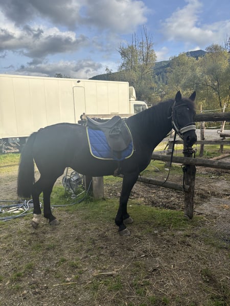 Mariska, or "Schoki" as I call her, is a friendly horse by nature. She has no issues with saddling or bridling, and she is easy to groom and pick out her hooves. She is leadable on a halter and enjoys lunging in all three gaits. I purchased her on July 10, 2024, from the Brandenburg-Anhalt Horse Breeding Association as a suitable riding horse. She has lived with us in a herd in open stable management, alongside two other mares and a foal. When it comes to food, she is quite eager and tends to push herself forward. Otherwise, she integrates well into the herd, showing neither biting nor kicking behavior. She is also gentle with her foal. The veterinarian has vaccinated her against all common diseases, and I regularly deworm her. I have already ridden her extensively, in all gaits, passing by cattle herds, etc. Now, for the important part: recently, she has become somewhat skittish. A spruce tree fell on our paddock during tree felling, and she has not fully recovered from that experience. Therefore, I recommend her only to an experienced rider who can help her regain trust in humans. Currently, I am listing her as a companion horse. It is with a heavy heart that I am offering her for sale, as I must leave the farm due to personal reasons. The price for this beautiful, lovable mare is of secondary importance; what matters most to me is that she finds a good home, as she truly deserves a life with proper care and respect.