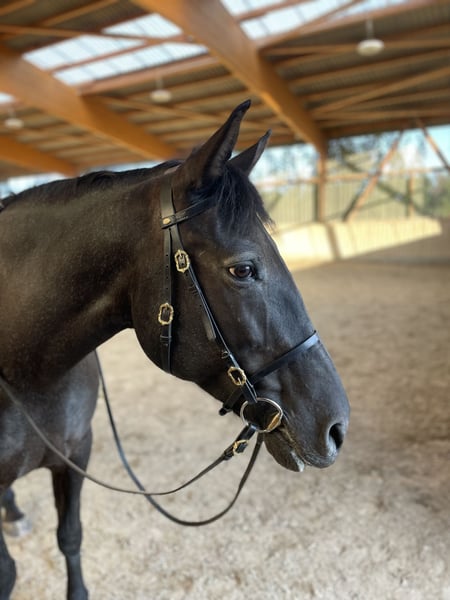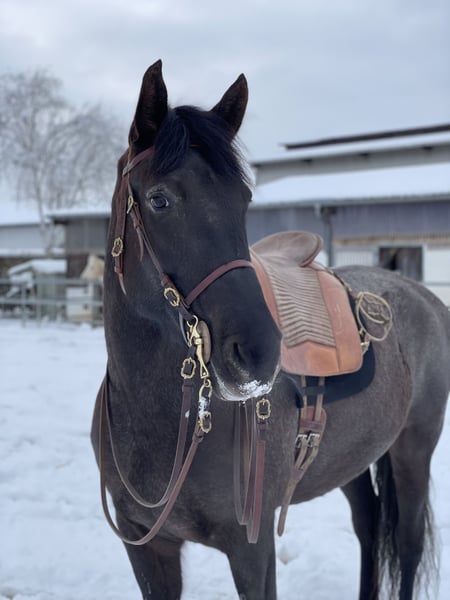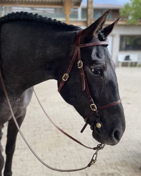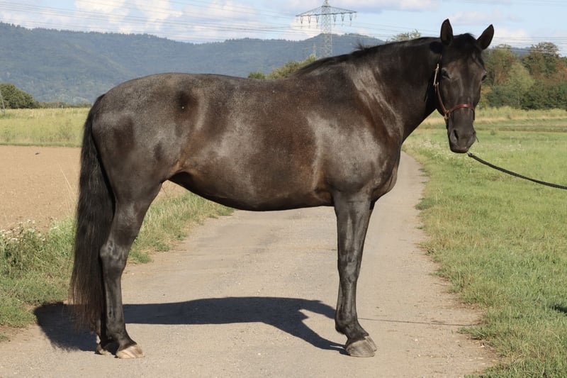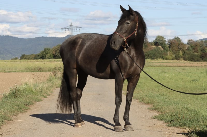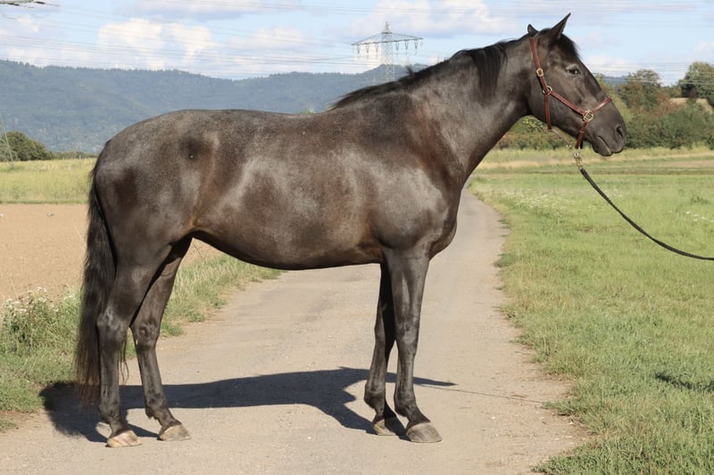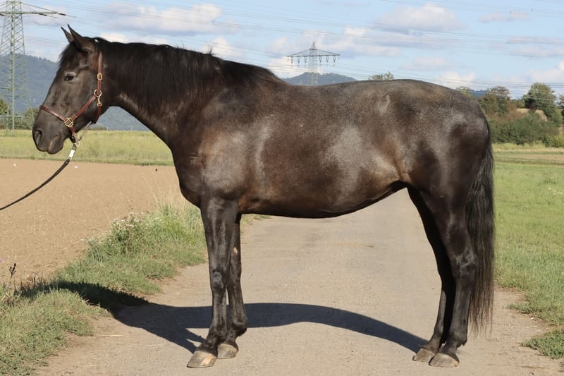 For sale is the lovely, 2009-born Knabstrupper-Andalusian cross mare “Filiberta” (approx. 16.1 hh). She was purchased at age three by a small breeder of these breeds, gently and versatile trained, and possesses a solid foundation in various disciplines. Training & Character: Filiberta is highly experienced in groundwork and classical handling. She masters lateral movements, traverses, pirouettes, and shows a natural talent for piaffe. She is lunged in a cavesson, familiar with long rein work and horsemanship training with a rope halter. Under saddle, she has been trained in classical dressage up to approximately medium level (side movements, very nice piaffe). She was introduced early to all working equitation obstacles and has been presented up to L level. Through numerous clinics (working equitation, desensitization, groundwork, horsemanship, cattle training), she has proven her reliability in many different situations. Filiberta is people-oriented, attentive, sensitive, and dependable. She reacts subtly to body language, loves grooming, and shows no bad habits in handling or riding. She loads easily onto a trailer, is very bonded to her handler, and is suitable for traveling alone. During walks and rides, she is reliable and has never shown bad behavior (such as balking, bucking, sticking to other horses, etc.). Filiberta was kept in a paddock with her active stable for many years, is very social and herd-safe. Currently, she is housed in a double paddock box with an older gelding, with daily turnout on sand paddock or pasture, but she is also familiar with a single box. Pedigree: From the Knabstrupper side, she exhibits the characteristic “people’s eyes,” a charmingly spotted muzzle, and her distinctive coat color—black-brown with lighter Stichelhaar, especially on the croup. Her dam was an Andalusian mare of unknown origin, from whom she inherited her sensitive yet manageable temperament. She is not a “sleeping pill,” but remains well-behaved even during her rest days. Health: Filiberta has orthopedic reports and is therefore not suitable for sport or competition (details available upon request) – hence, her price is very reasonable. She is in full training and is exercised regularly. Additionally, she is vaccinated, dewormed, and presented to the farrier (currently shod in front). Her teeth are checked annually, and she is osteopathically examined if needed (last checked August 2025). Suitable for: - Classical handling, groundwork & horsemanship - Leisure riding - Liberty work & circus tricks - Possibly as a school horse for young, responsible riders - Riders with health limitations - Possibly as a therapy horse—thanks to her friendly nature and extremely comfortable gait We are looking for an experienced, loving home with someone who enjoys a versatile, attentive, and affectionate leisure partner, focusing on a trusting partnership rather than sporting performance. Due to her versatility and wonderful character, we can imagine her in various roles – we look forward to inquiries and a personal meeting! Further information gladly provided upon serious interest. Price negotiable. Private sale. Location: 68229.