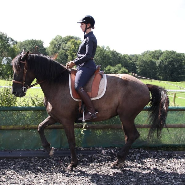 Zum Verkauf steht die hübsche, 2009 geborene Knabstrupper-Andalusier-Mix-Stute „Filiberta“ (Stockmaß ca. 163 cm). Sie wurde als Dreijährige von einer kleinen Züchterin für diese Rassen gekauft, schonend und vielseitig ausgebildet und bringt eine solide Grundlage in verschiedenen Bereichen mit. Ausbildung & Charakter: Filiberta ist sehr erfahren in Bodenarbeit und klassischer Handarbeit. Sie beherrscht Seitengänge, Traversalen, Pirouetten und zeigt ein natürliches Talent für die Piaffe. Sie wird am Kappzaum longiert, kennt Langzügelarbeit und Horsemanship Training mit Knotenhalfter. Unter dem Sattel wurde sie klassisch dressurmäßig bis etwa M-Niveau ausgebildet (Seitengänge, sehr schöne Piaffe). Schon früh wurde sie an alle Working-Equitation-Hindernisse herangeführt und bis L-Niveau vorgestellt. Bei zahlreichen Lehrgängen (Working Equitation, Gelassenheitstraining, Bodenarbeit, Horsemanship, Rindertraining) hat sie in vielen unterschiedlichen Situationen ihre Zuverlässigkeit unter Beweis gestellt. Filiberta ist menschenbezogen, aufmerksam, feinfühlig und zuverlässig. Sie reagiert sensibel auf Körpersprache, liebt ausgiebiges Putzen und zeigt keinerlei Unarten im Umgang und beim Reiten. Sie geht problemlos auf den Anhänger, orientiert sich stark an ihrer Bezugsperson und eignet sich daher auch zum Alleine reisen. Bei Spaziergängen und Ausritten ist sie zuverlässig und hat nie Unarten (Durchgehen, Buckeln, Kleben an anderen Pferden o.ä.) gezeigt. Filiberta wurde viele Jahre im Aktivstall gehalten, ist sehr sozial und herdentauglich. Aktuell steht sie in einer Doppel-Paddockbox mit einem älteren Wallach, tagsüber auf Sandpaddock/Weide, kennt aber auch die Einzelbox. Abstammung: Von der Knabstrupper-Seite bringt sie die typischen „Menschenaugen“, ein charmant geschecktes Maul und ihre besondere Fellfarbe mit – schwarzbraun mit hellen Stichelhaaren, vor allem auf der Kruppe. Ihre Mutter war eine Andalusierstute unbekannter Abstammung, von der sie ihr sensibles, aber kontrollierbares Temperament geerbt hat. Sie ist also keine Schlaftablette, aber dennoch auch nach Stehtagen brav. Gesundheit: Filiberta hat zubildenden Spat und ist daher nicht für sportliche Einsätze oder Turniere geeignet – daher deutlich unter Wert abzugeben. Sie steht voll im Training und wird sehr regelmäßig bewegt. Außerdem wird sie regelmäßig geimpft, entwurmt und dem Schmied vorgestellt (aktuell vorne beschlagen). Einmal jährlich werden die Zähne kontrolliert und sie wird ggf. osteopathisch gecheckt (beides zuletzt 08/2025). Geeignet für: - Klassische Handarbeit, Bodenarbeit & Horsemanship - Freizeitreiten - Freiarbeit & Zirkuslektionen - Eventuell als Lehrpferd für jüngere, verantwortungsbewusste Reiter:in - Reiter:innen mit gesundheitlichen Einschränkungen - Ggf. als Therapiepferd – aufgrund ihres menschenbezogenen Wesens und ihrer äußert sitzbequemen Gänge Gesucht wird ein pferdeerfahrener, liebevoller Lebensplatz bei jemandem, der Freude an einer vielseitig ausgebildeten, aufmerksamen und lieben Freizeitpartnerin hat und den Fokus auf vertrauensvolle Partnerschaft statt sportliche Leistung legt. Aufgrund ihrer Vielseitigkeit und ihres tollen Charakters können wir sie uns für verschiedene Einsatzbereiche super vorstellen - Wir freuen uns auf Anfragen und ein Kennenlernen! Weitere Informationen und Videos sehr gerne bei ernsthaftem Interesse. Preis VHB. Privatverkauf. Standort 68229.