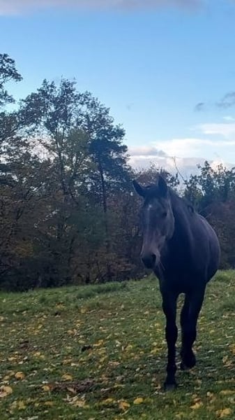 Dora Diamant af Eichlgütl Inscrit au ZfdP. Père : Knabstrupper, étalon du ZfdP, registre 2, Benz' Indiana Jones, avec d'anciennes lignées danoises remontant au XVIIIe siècle. LP/Lp, PATN1/Patn1. Mère : Knabstrupper, Pippi, inscrite au ZfdP. LP/Lp. Le développement de la couleur de Dora est encore imprévisible. Dora Diamant, nommée d'après la dernière amie de Franz Kafka, née en l'année Kafka (17.06.2024), est une pouliche mare très proche de l'humain, avec un tempérament exceptionnellement calme. Elle monte déjà seule dans un van, connaît le bain dans la rivière et est totalement sans peur. Typique du Knabstrupper, elle a une tête très claire et un caractère bien trempé. Depuis sa naissance, elle grandit en liberté dans un groupe avec sa mère (la jument dominante) et plusieurs autres jeunes chevaux, en paddock ouvert. En raison de sa sérénité, une utilisation comme cheval de thérapie serait également envisageable. Ses parents, en particulier le père, ont une excellente aptitude à la dressage. Le père est la propriété des Oliveira Stables. Nous proposons également une place d’élevage très abordable à 140 euros par mois. Pour toute réelle intention, n'hésitez pas à nous écrire avec une brève présentation de vos projets pour Dora ou à nous appeler directement au 0177-4816901. La dernière photo montre le père. Les autres photos illustrent Dora de sa naissance jusqu’à aujourd’hui.