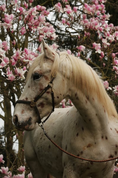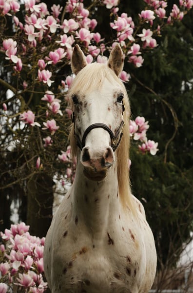 Nathan af Kronplet for Sale! Original Knabstrupper stallion with no foreign bloodlines. He will be three years old in May. Currently measured at 15.7 hh. Nathan is very people-oriented, intelligent, and eager to please. He is confident, calm, yet also sensitive and delicate in handling. He was awarded an 8 at his licensing, which speaks to his quality. A dream for any rider seeking a true partner for life and a special gem. Price on request. Pictures by Marianne Schwöbel.