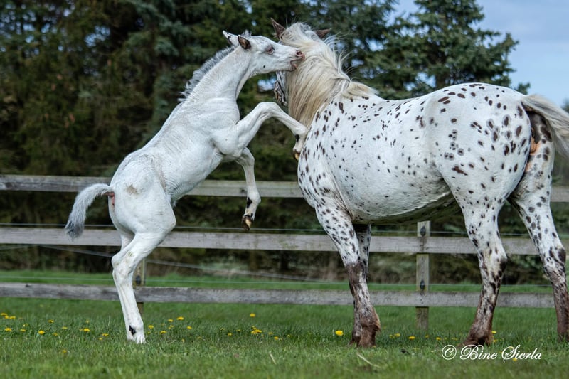Elegant Homozygous Black Few Spotted 16/16 original Knabstrup Stallion. Original classic type very well build for dressage collection, leisure, western, carriage, or breeding. Natskygge/Nightshade is a sweet calm 12/16 purebred original knabstrup Stallion and 4/16 Spanish PRE Grand Prix stallion. Easy to handle, healthy, elegant and would great on the dressage competition arena. Homozygous black few spotted is the most wanted for knabstrupper breeding, because it guarantees a spotted foal if you cross a homozygous with a solid color like black, brown, red etc. For more information and pictures please follow our homepage… Stutteri Knabstrup 2026 Facebook