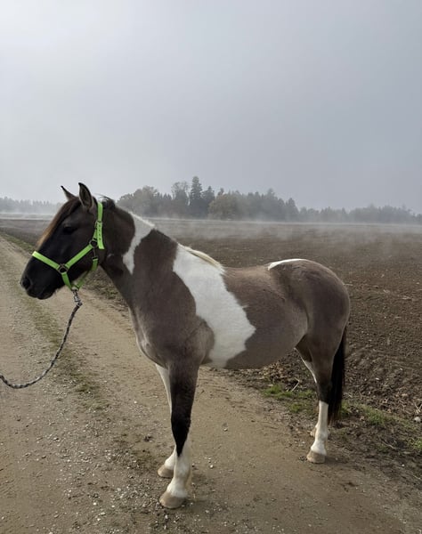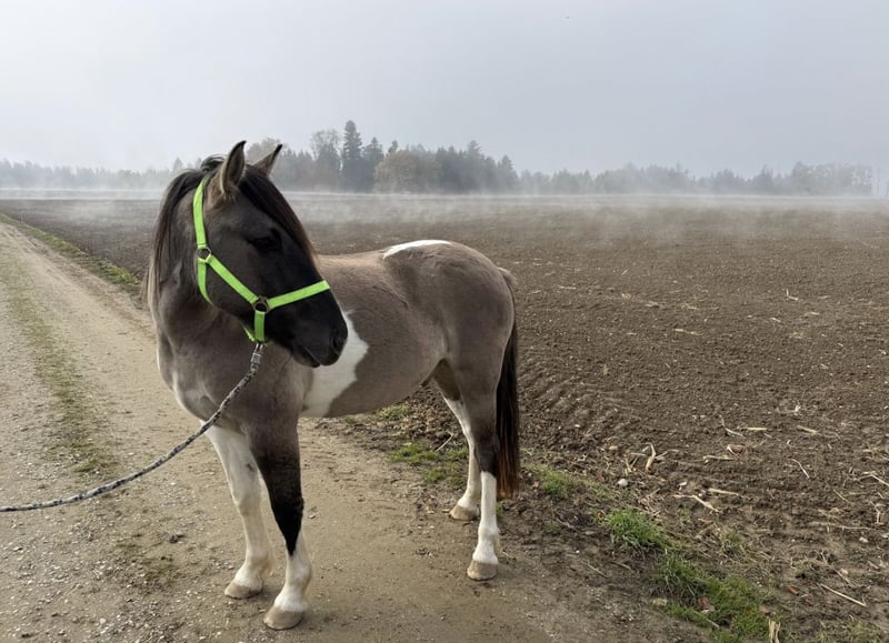 hübscher Konik / Lewitzer Mix Wallach, wird im März drei Jahre alt. Jungpferde typisch noch Flausen im Kopf aber lieb/umgänglich. Regelmäßig geimpft und entwurmt. War nie krank, unauffällige AKU aus Mitte 2025 liegt vor. Kennt leichte Bodenarbeit, Anfänge der Longe und vor allem die Freiarbeit im Roundpen. Gelände wurde noch nicht viel geübt. Wird als roh abgegeben zum selber ausbilden. Braucht erfahrene, konsequente Person Bei weiteren Fragen bitte gerne schreiben Liebe Grüße