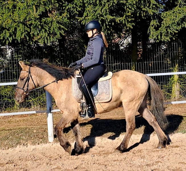 Konikwallach - perfekt als Geländepony 4 j.a ca. 1,41m ( noch in Wachstum) Kinderlieb Schön angeritten und Gelände sicher. Mit Vollabstammung, Ohne Unarten Top Gesund Offenstall geeignet Standort nähe Görlitz Videos vorhanden. Transport möglich